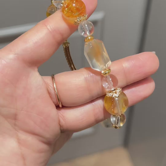 Natural yellow crystal and yellow rabbit hair crystal bracelet, a festival gift for girlfriend's mother